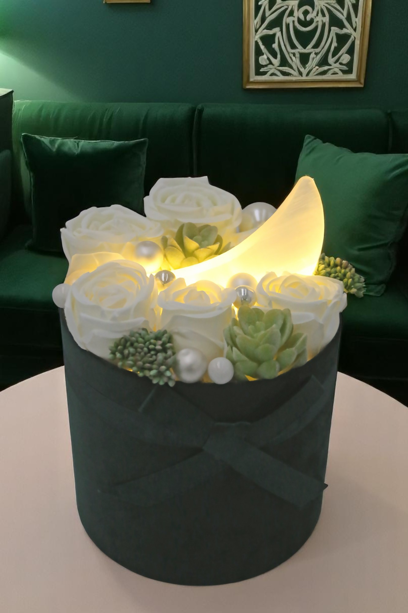 Holdkert örök virágbox Szelenittel 18cm (világító)