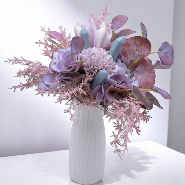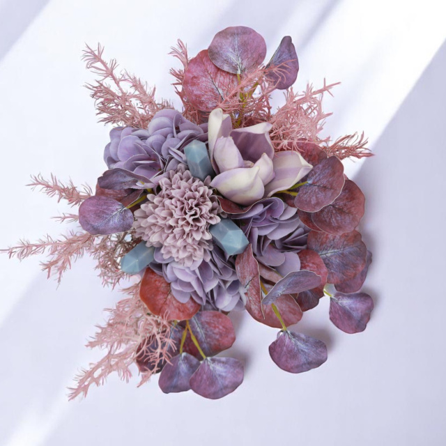 A kompozíció a szeretet, gondoskodás és belső erő finom megtestesítése. A csokrot mély és lágy lila árnyalatú selyemvirágok – magnóliák, hortenziák és mezei virágok – alkotják, amelyek a méltóságteljes nőiességet, bölcsességet és az érzelmek gazdagságát idézik.