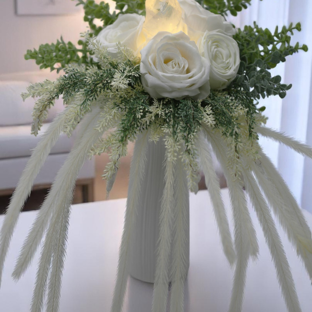 A Daphne Bridgerton ihlette csokor a klasszikus elegancia és a kifinomult romantika megtestesítője. Ez a kézzel készült, minőségi selyemvirágcsokor tiszta fehér rózsákkal idézi meg a sorozat legbájosabb hősnőjének finom, visszafogott és mégis erőt sugárzó stílusát.
